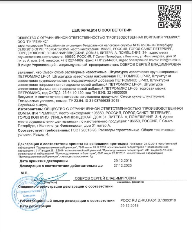 Таким образом, штукатурка известковая финишная с гидравлической добавкой ПЕТРОМИКС LP-05 20 кг - надежный и универсальный материал, который позволяет получить качественную и прочную отделку стен и потолков внутри помещений. Она идеально подходит для использования в строительстве и ремонте любых объектов.